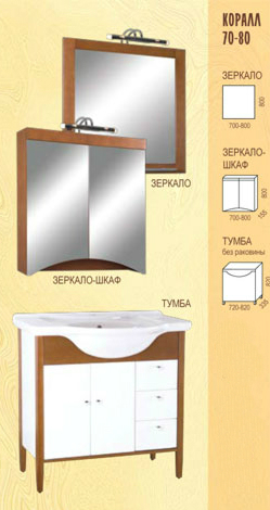 Комплект мебели в ванную комнату Аквалеон «Коралл 85». Страна-производитель: Россия. Мебель изготовлена из натурального бука с ротанговыми вставками. Комплект состоит из двустворчатой тумбы и зеркала-рамки либо, зеркала-шкафа. - Характеристики комода Аквалеон «Коралл 85».